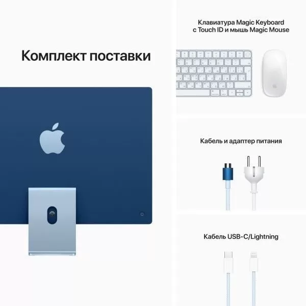 Моноблок Apple iMac 24" Retina 4,5K, M1 (7-core GPU), 8 ГБ, 256 ГБ (MJV93), синий